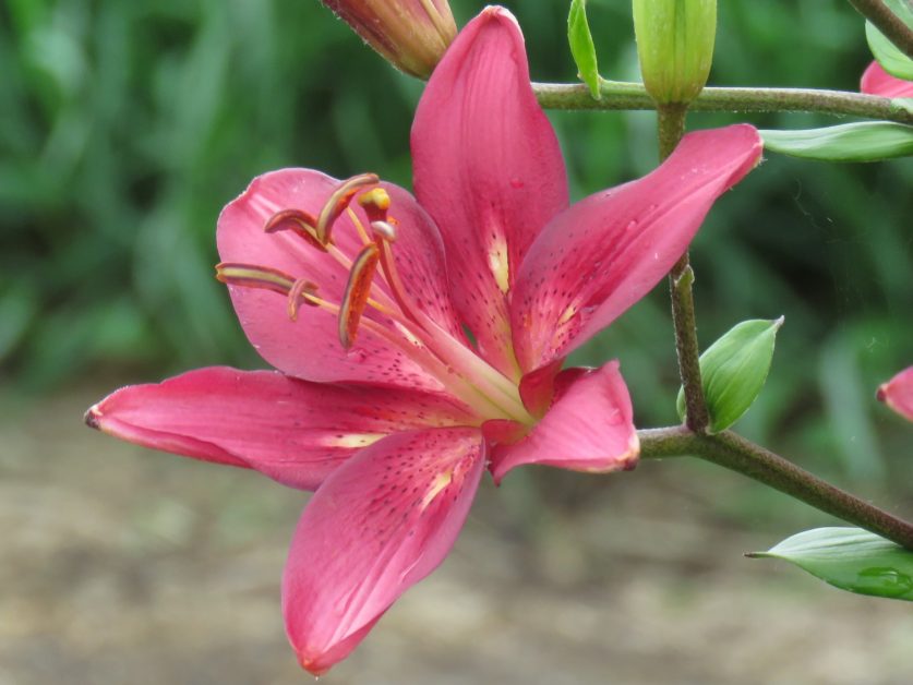 Now where Brave Maia has large blooms, Little Hands has tiny slightly cupped magenta flowers with white-lime patches coming from the nectaries of each petal. Little Hands reminds me of tiny things, like kitten paws, mini tea sets and of course the careful hands of a child at play. The little buds are more stubby and oval compared to those of most other lilies. I hope you enjoy this unusual garden lily.