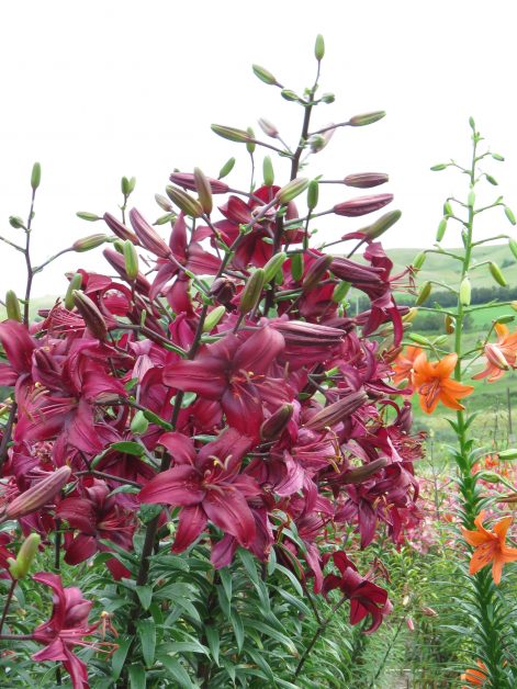 Reckless is a taller lily with numerous blooms and dark stems that have secondary and tertiary buds, providing a flush of flowers after the first, on mature plants. Reckless will add dark depths to your garden.